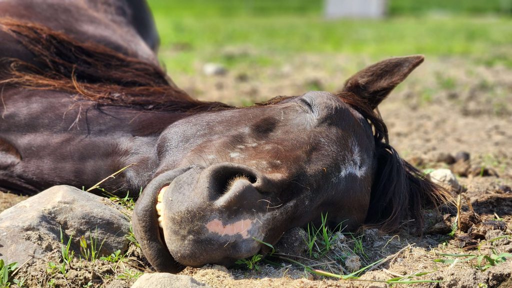 RAMS Ambassador mustang Pepper loves a good nap in the sun.